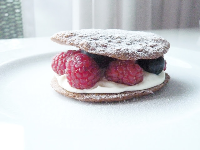 yesterday night my beautiful and sweet friend nina who loves to cook & bake just like me came over for a simple dinner, an extensive chat à deux and some baking. we made some faux chocolate maccarons filled with crème double and berries. delicious. i'm sorry, i'm in a bit of a hurry tonight; i've got to practice a little for tomorrow's (quite big) trends presentation. thank you for reading! a sweet hello & a smile.