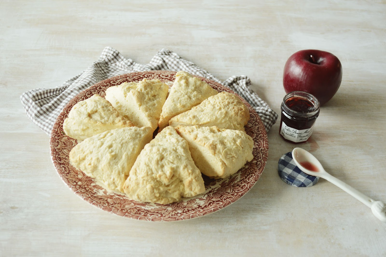 i've got this scones recipe, that i'm swearing by; it's by fortnum & mason. i was convinced that that's the best one i'll ever have. but then, when you're spoilt by success, you tend to get jaunty and willing to take a risk, again. such is life, it seems. so i started the quest for a new recipe, just for fun, just to see what's possible. and so, on saturday morning, before i was even half awake and knowing what i was doing, the butter, the holy keepers of the scones recipes claim, needs to be very cold. that means you have to work very quickly and reduce kneading to minimum. this recipe is egg-free. i figured 'more butter - less egg' would probably make the scones even more fluffy. so i gave it a go. and it's probably even better than my former favorite. sorry, fortnum & mason. it's all for the sake of the science and eternal scones happiness, though; a higher purpose so to say.