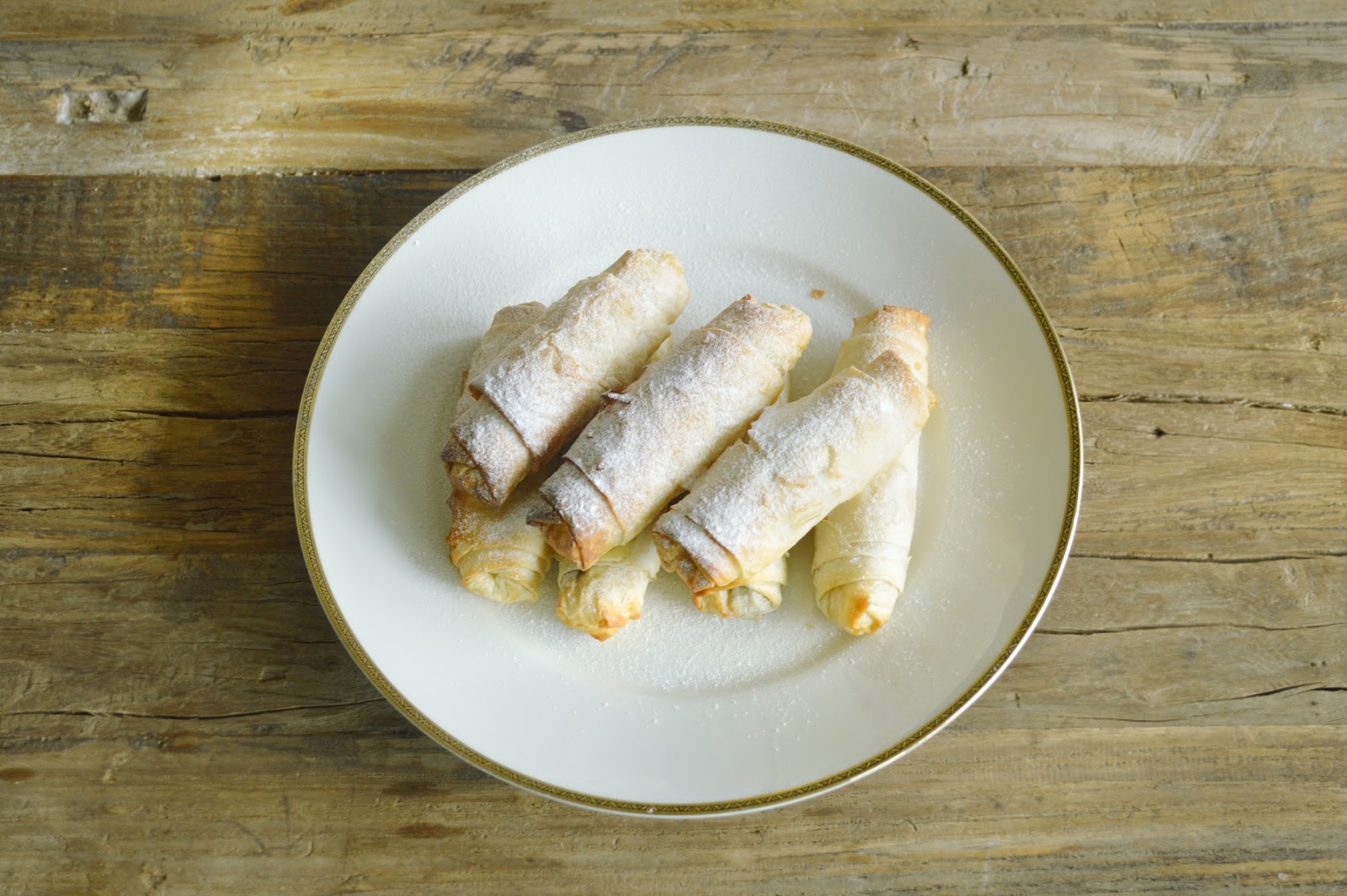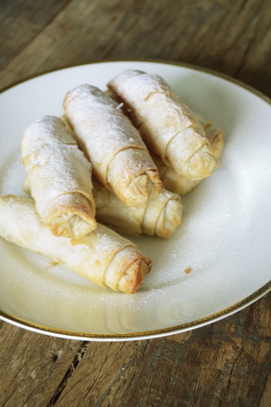 melt the rest of the butter in a open the phyllo dough, then cover with a clean, humid kitchen towel, to prevent the dough from drying out. cut into equal rectangles of about 10x15cm. place a tablespoon (plus/minus) of the rice pudding mix onto the phyllo square at the bottom corner. shape the rice into a longish, saucage like strip along the width side of the rectangle, leaving out a thumb wide on each side (to fold in later). now brush the three other sides of the rectangle (where there's no rice) generously with butter. fold in the sides, then start to roll up. put the roll on a sheet lined with parchment, with the end facing down so that it doesn't spring open. proceed until either all of the phyllo or all of the rice mix is used up. preheat the oven to 220c/400f. brush each roll on top with more butter (this is vital as it will render the briks crispy without them drying out and getting burnt) and bake in the middle of the oven for about 20 minutes, until equally golden-brown and crispy-looking. you can try one at this stage, to check for doneness (the rice should be hot inside, through and through).