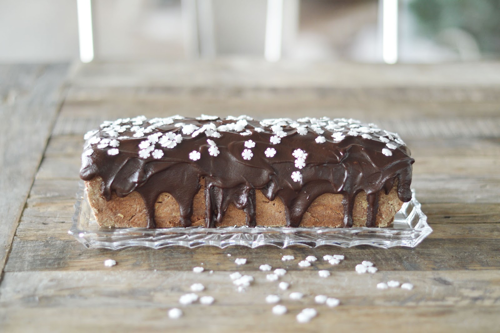 for the glaze, make a 'parisian cream', as elisabeth calls it. melt the chocolate very slowly on very low heat, together with the cream. stir constantly, until the mixture is very smooth. let cool a bit. pour onto the (cooled) cake from the center outward, making a thick glaze. do not spread it with a spatula or anything. simply shake and beat the cake a bit. sprinkle with sprinkles, if you're a sucker for anything cute, like me.