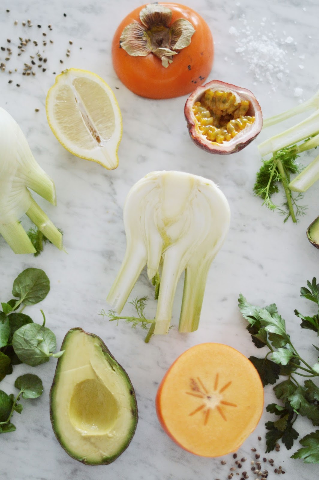 winter salad of fennel, avocado & hemp seeds