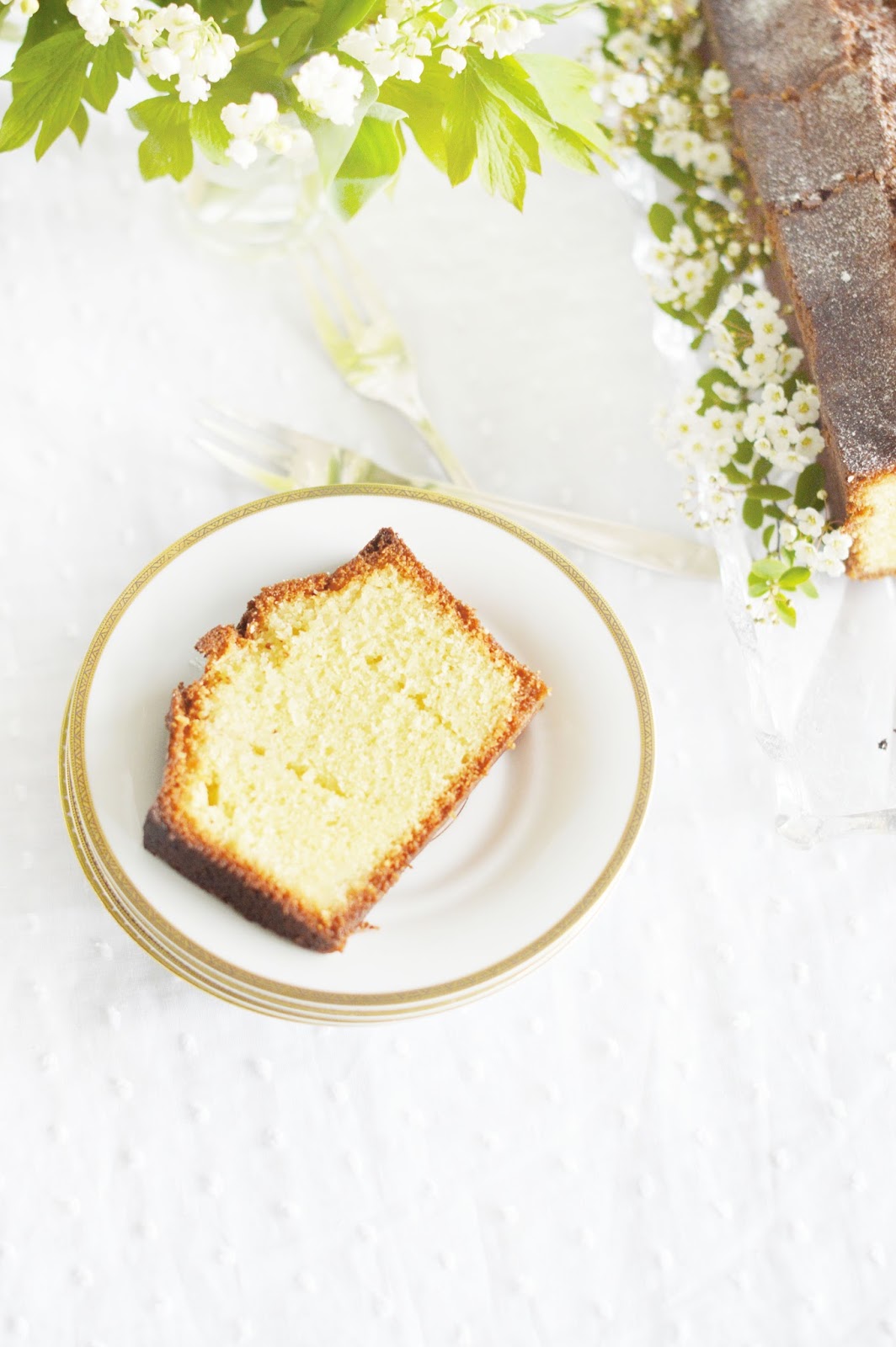 my grandma used to make this cake all the time, whenever we were (or weren't) visiting: the lemon loaf. well, i have to say it's never been my favorite. probably because it's tendency to be too dry, oftentimes. what i do like, however, is when a basic loaf is juicy and fragrant. this is where this recipe ads a spin to things. it means you don't soak the loaf with lemon juice like your granny does. it means you gently enhance it by adding elderflower syrup to the finished loaf.