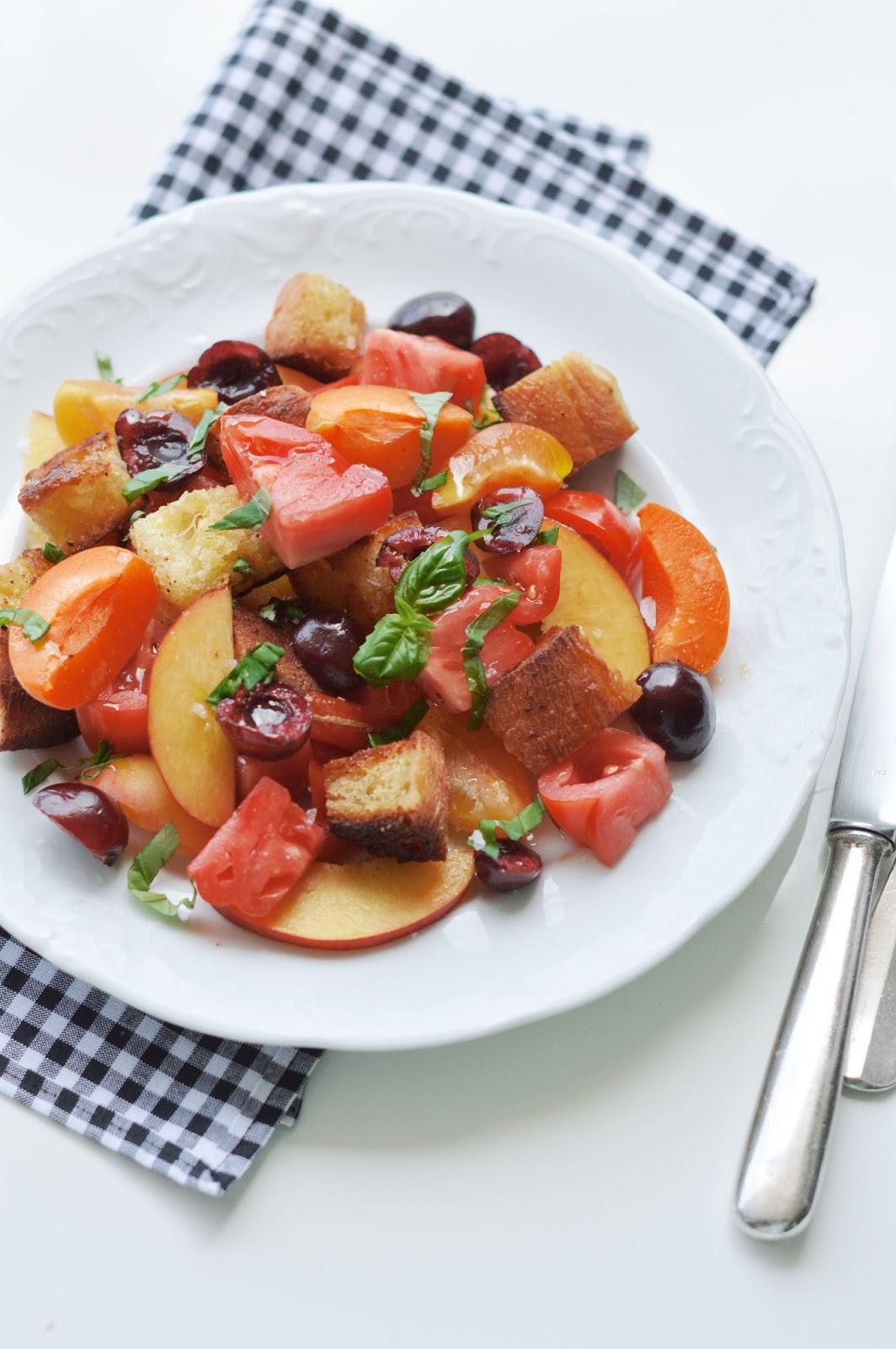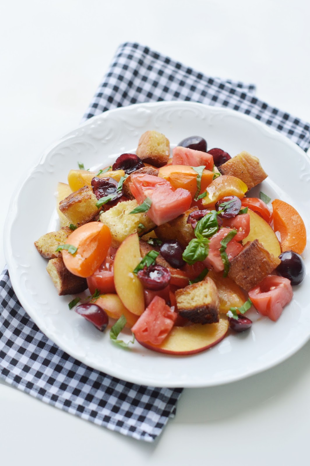 summer panzanella - italian bread salad with tomato & stone fruit