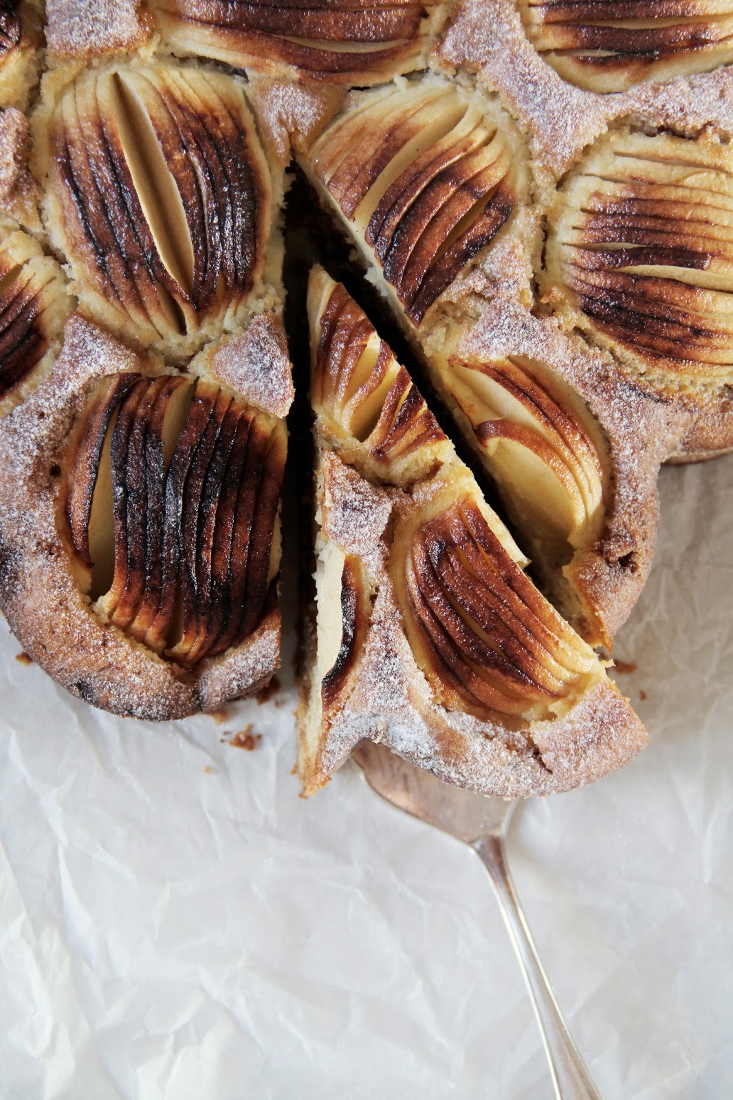 sunken apple cake with caramelized walnuts & calvados