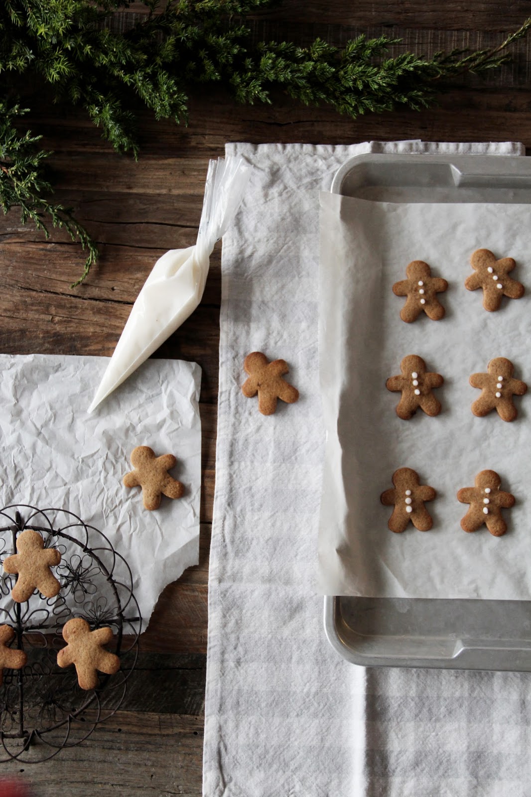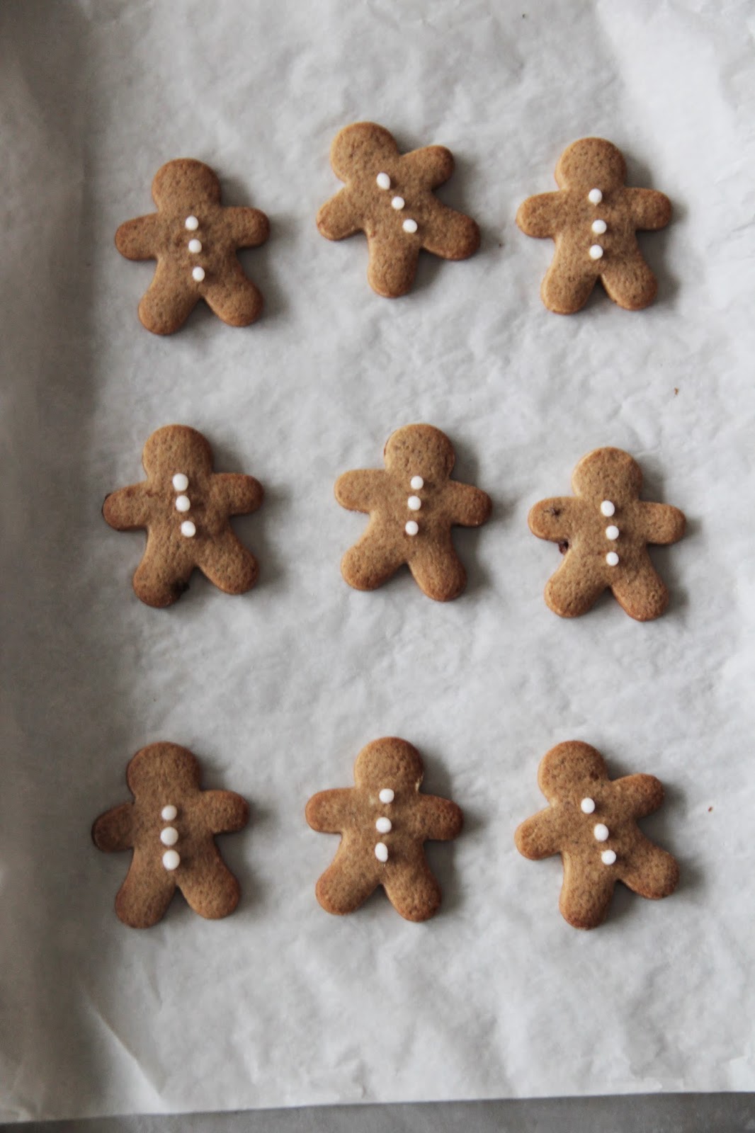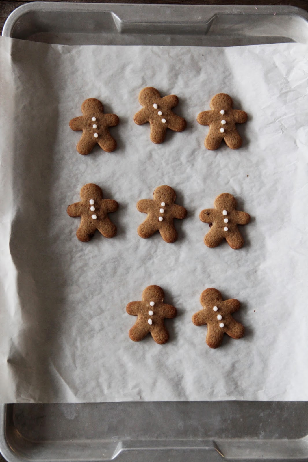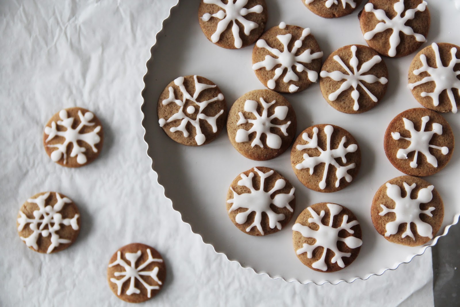 i wanted to capture the true longing for the first snow with these snowflake or ice crystal pepper cookies. i made some typical gingerbread men shapes, too, because we used them for place cards on a family gathering. and because the snowflakes were a bit of a piece of work, really. but the output is fairly decent.