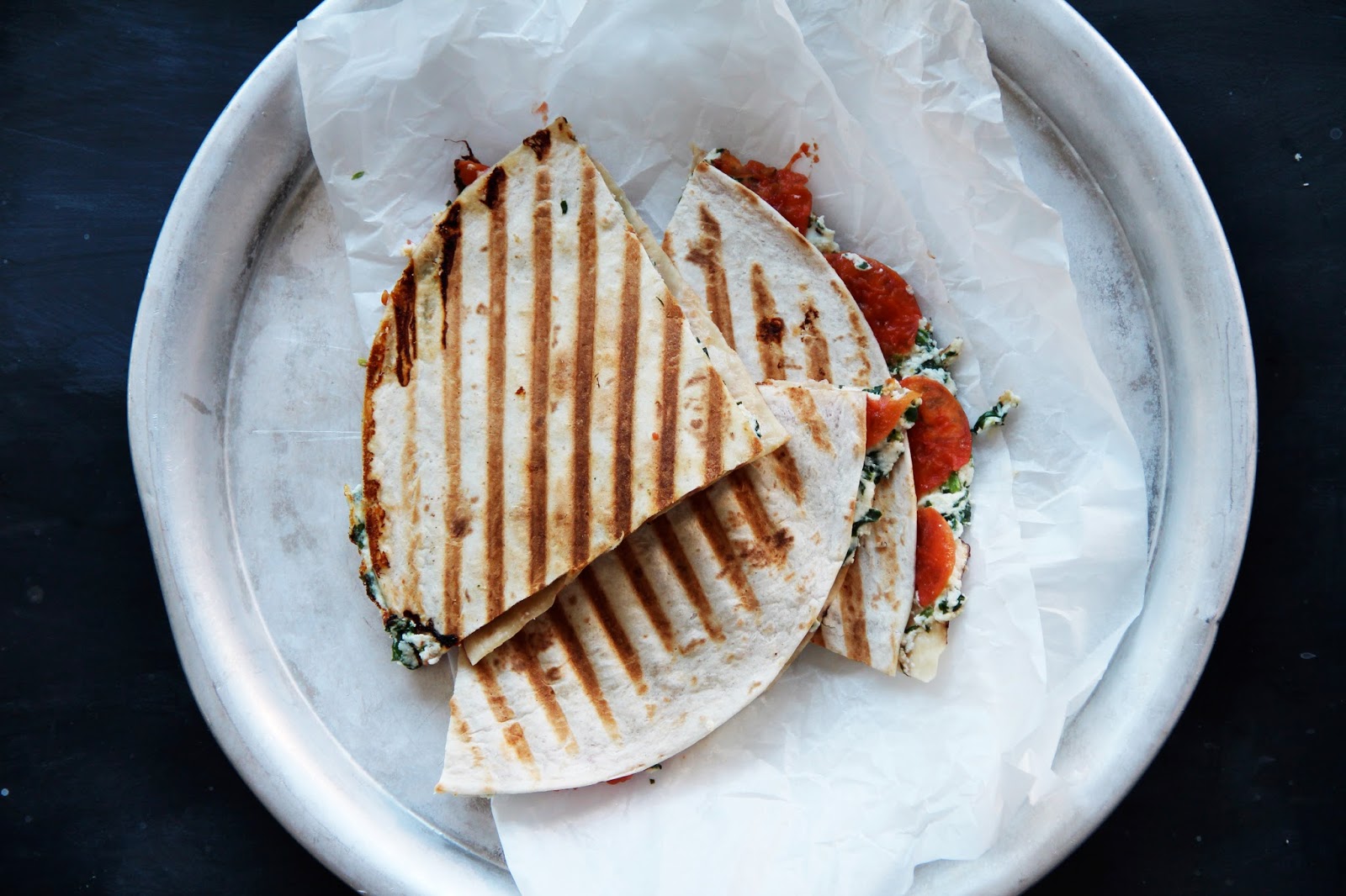 grilled ricotta tomato quesadillas