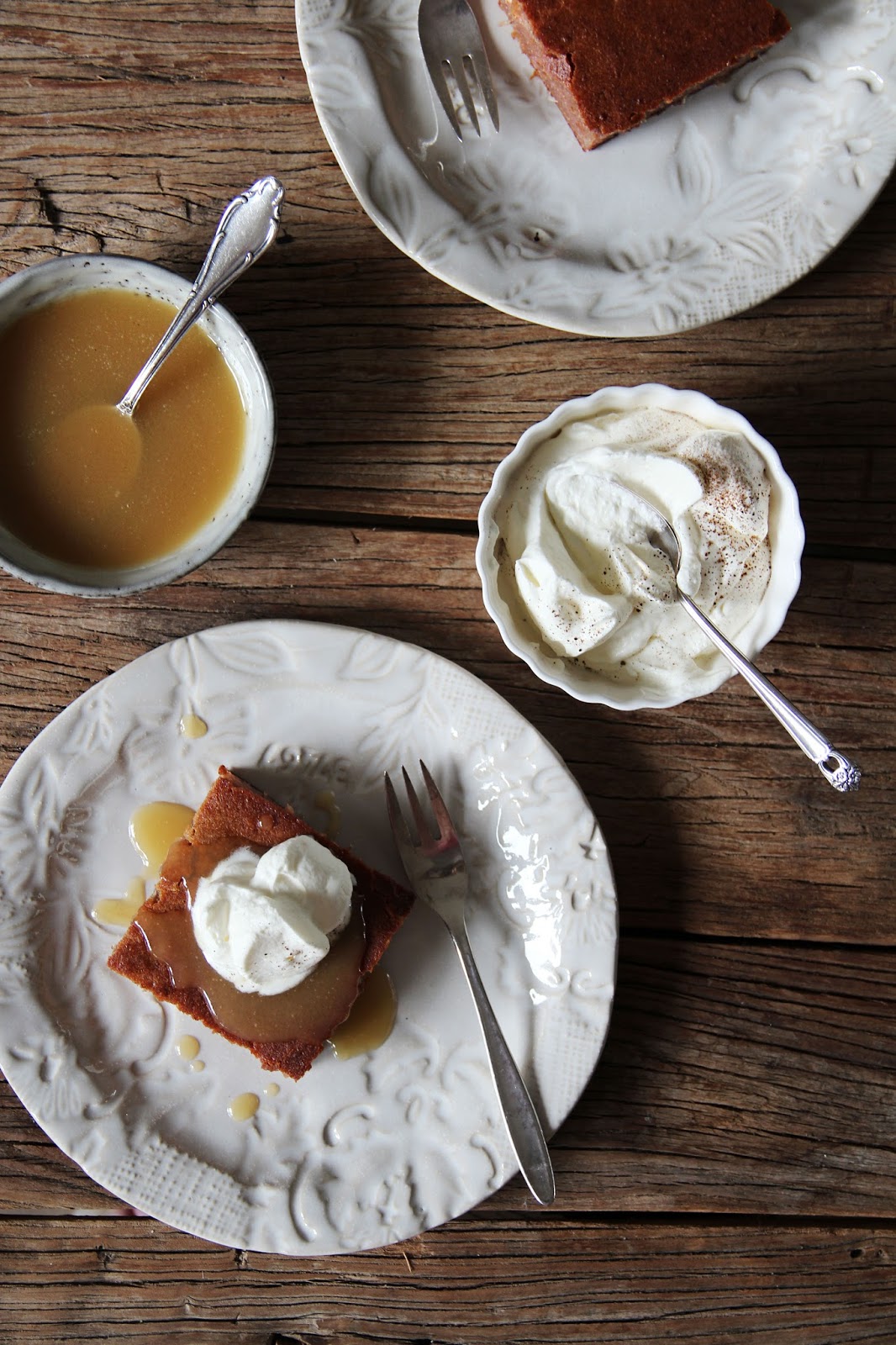 serve the cake warm, with a drizzle of the warm toffee sauce and some whipped cream with cinnamon, if you like.