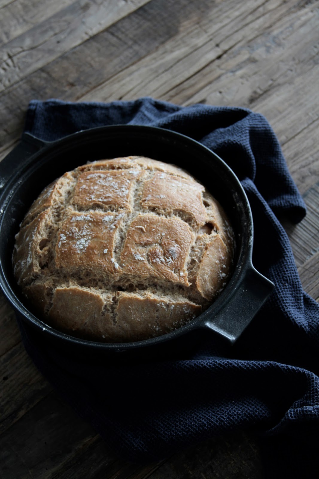 now, it’s not entirely easy to make such heavenly bread. or at least it’s super time consuming. that’s where this no knead bread comes in: it’s made in a dutch oven, which makes it super crispy on the outside and moist and chewy on the inside. it smells very intensely of bread (what should actually be plain obvious, but still is somehow remarkable) - which is thanks to the added beer. in other words: i think this should be your next weekend project. because it’s a bread you don’t need to be afraid of. no worries! dust off your dutch oven and start baking!