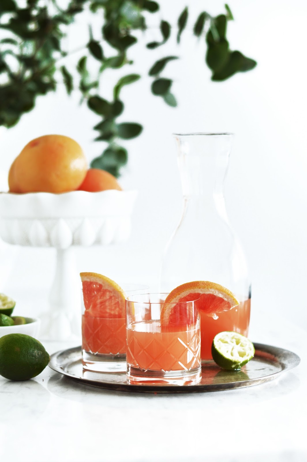 As introduced to you some time back, I had the honor and the pleasure to work with Kuoni on my favorite drinks for an “elsewhere” inspired Cocktail Hour. You already saw and maybe tried the Peaches & Roses Bellini, which is one of the best treats whenever the occasion arises to host a fabulous brunch! So simple to stir together, too, and rather fancy. This one here though, the Paloma, is a rather unfussy and dirty number of a drink. It consists of Tequila and Grapefruit Juice or Soda, and not much more. Apparently, the Mexicans put a bottle of Tequila and Fresca (a Grapefruit Soda) on the lunch table for everyone to mix their sips according to their liking. For lunch, you guys? So from the brunch bellini it is on the lunch tequila, haha. I do not complain!