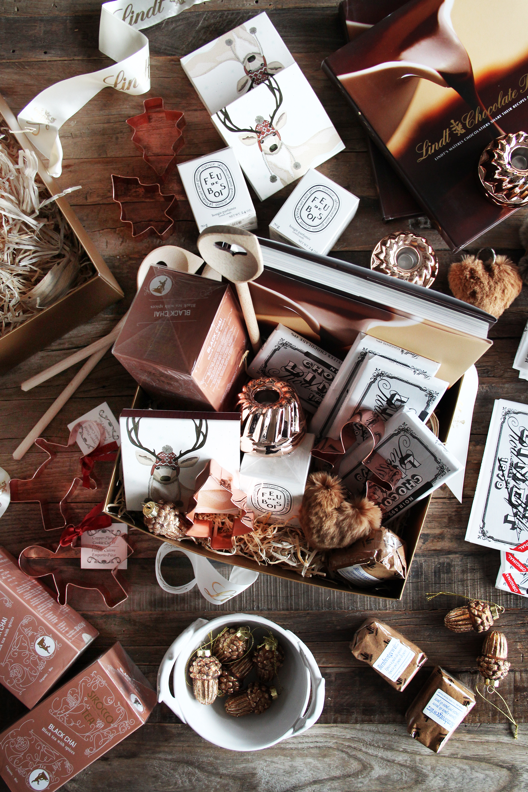The giveaway includes: 4 tablets of Lindt Crémant Noir 49% (naturally), for your own hot chocolate creations at home. You can leaf through the glossy Lindt Book while sipping on your hot choc - a sweet coffee table book about the world of chocolate, recipes included. Then there is this delicious Diptyque Candle, in my all time favorite scent “Feu de Bois” (that instantly creates a warm, wintery, fire place atmosphere in your home). You can light it with one of the large matches that I included. My favorite tea from Sirocco - a Swiss tea brand that I love - shouldn’t be missing, either. Because you can only drink so much hot chocolate, right? The Black Chai is particularly nice (make sure to sweeten it liberally, hehe). To bring your baking sessions to the next level, I picked my favorite copper cookie cutters (say “copper cookie cutters” three times in a row without twisting your tongue) - a christmas tree and a gingerbread men (you can use this or this post for inspiration) - and added my favorite (pumpkin-)spice-mix, which is called “Lebkuchen-” or “Birnenbrot-Gewürz” around here. You can even add a pinch to your hot chocolate, hmm, delicious! The wooden spoon with the heart will help you whip everything up, piece of cake. When you still need some more help to offset your holiday mood, light another candle. The mini, copper bundt cake pan candle stick is the ideal place for a slim, long candle. Can we talk for a second about how cute this candle stick is…? If all of this doesn’t keep you warm, then there is still this heart shaped, furry key holder. To keep you company on your adventures out in the cold, and to always show you the way home. Home is where the heart is, right?