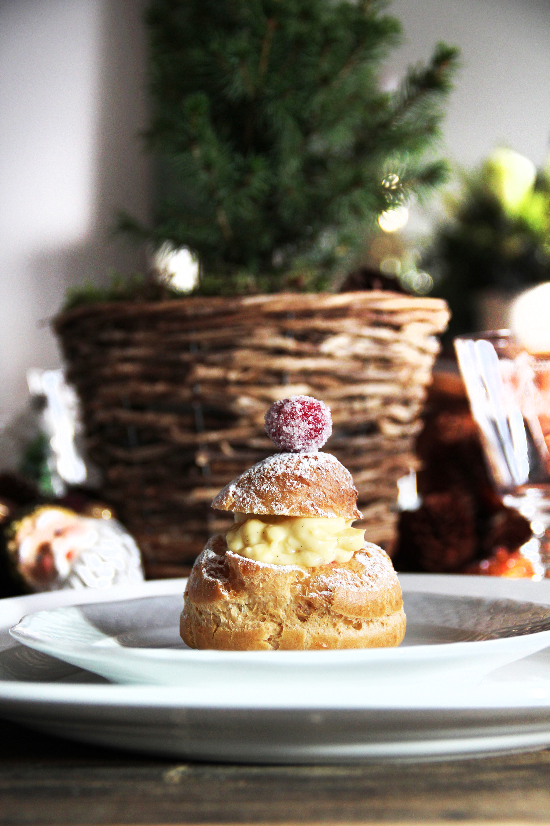 Note: I got the idea from this from Style Sweet, however I assembled the Puffs with my own version of cranberry compote, vanilla cream and choux pastry, from either recipes that I made dozens of time before (for the puffs) or trusted. Always a go-to for me is the cookbook from Elisabeth Fülscher. Everything should be kept very simple, so I made sure not to add too many flavors.