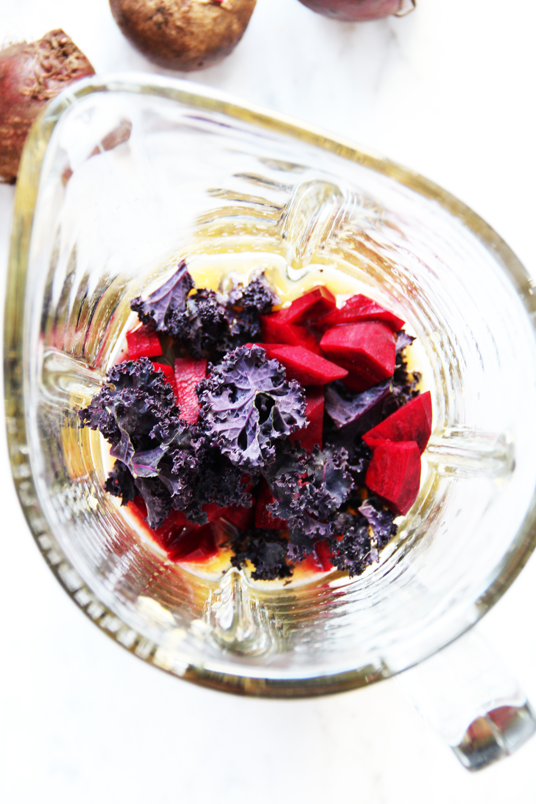 Occasionally, though, I verge from the classic green juice and experiment with colorful vegs and fruits instead. Pink juice, anyone? It’s officially a thing! Therapeutic in two ways: color therapy as well as healthy plus.