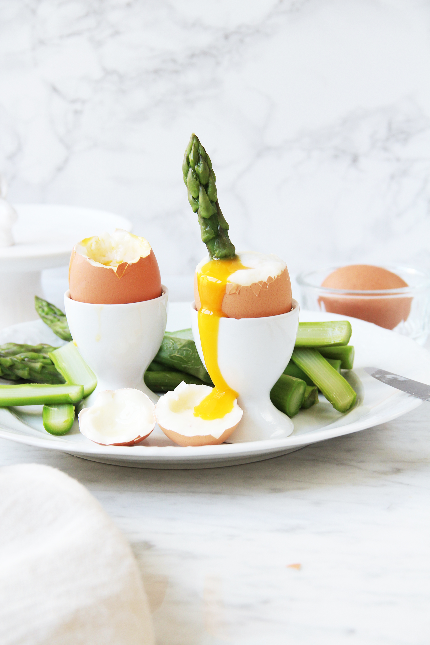 To shake things up - and also to get out of the hard-boiled eggs Easter rut - I like to make soft-boiled eggs every now and then. I give the eggs soldiers (normally bread sticks) to accompany them. This time around, this (not local, but so tempting) fresh, green asparagus replaced the bread soldiers. I think this kind of “instant mayonnaise” that the soft-boiled egg provides is delicious, healthy and fun. This brunch or even starter is done in literally 4 minutes. Tim you save in the kitchen you can then spend hunting for Easter eggs, for example. Clever, eh?
