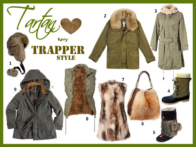 it's obvious by now that i (heart) all things with a hunter / trapper / lumberjack feel to it. by this, i mean rustic shirts, comfy knits and furry elements. i know i've posted a lot of checked shirts, lately. but did you know that there actually are many different wordings for 'checked'? in fact, 'checked' is the lamest word of them all. much nicer, i think, is 'plaid', with its double meaning and connotation of 'wool blanket'. and the word i like best for 'check' is actually 'tartan'. tartan is a specific weaving pattern that implies the belonging to a scottish clan. in other words: every family has it's own tartan (or so i like to think). wouldn't it be nice to have one's own tartan?