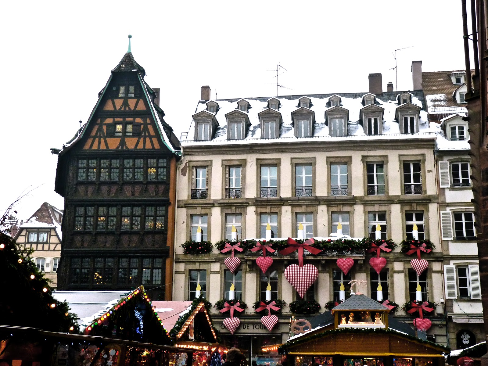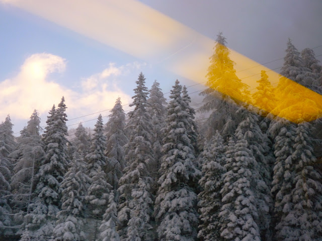 the sky above st. moritz / sternen grill sausage jetons in 'sterling silver' / the best sausage in the world / wine cave / huge fire place / sky over lech / deer table-cloth / boots for every weather, inlcuding my new rubber boots / window across the alsace sky / train-station in strasbourg / ski-lift and the palace in st. moritz / trainride back from the mountains / pretty old houses in strasbourg