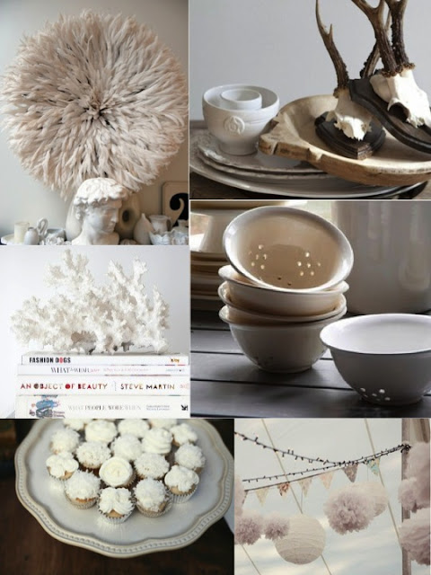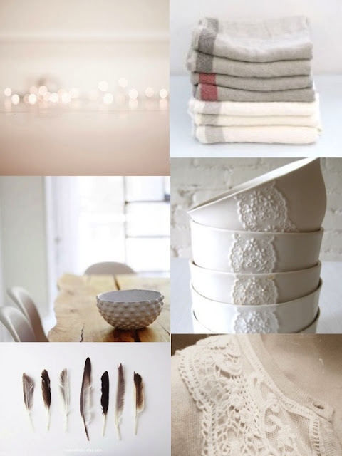 lately, i've come across such a lot of white... it struck me that white is not only white, but has a multitude of shades, depending on texture and light, from rose to grey. it would be lovely to live in a white textured home, i reckon. planning on using this mood board as a shopping-guide for myself: everything that would not harmonize with this does not find it's way into my home. or something?