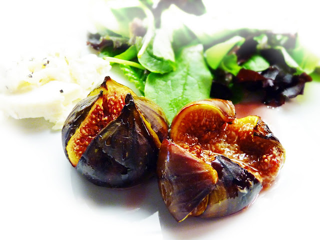 baked figs with goat cheese (and salad)