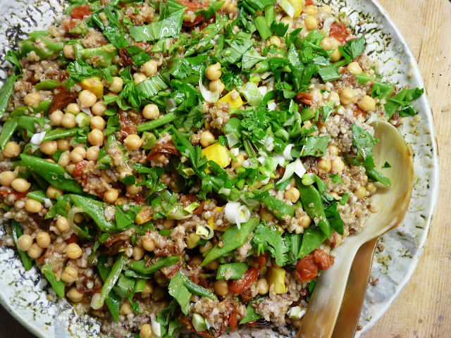 lucky me, though, that i quite like buckwheat. and since one of it's many benefits is that it's suitable for a gluten-free diet, i immediately thought about the grain. and took it from there. the tepid multi-grain gluten-free combination was my own, healthy creation (probably inspired by ottolenghi, as most happenings in my kitchen). and, well, think the girls liked it, right?