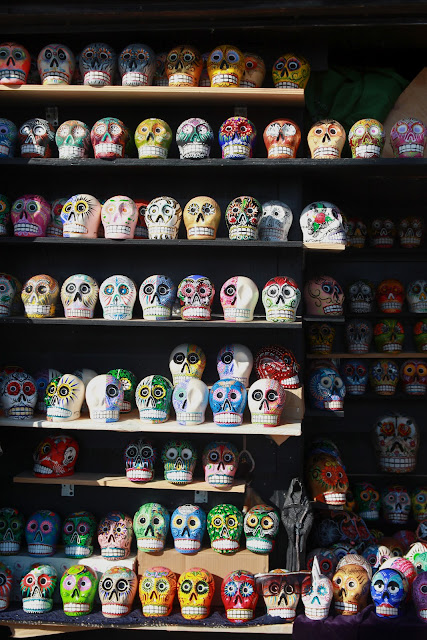 i particularly like skulls as objects with no other impact or use than simply to add a bit of edge, color and glamour to an interior space. considering this, though, people often find it pretty surprising that my home isn't actually a skulls museum... in fact, i've only got one - my precious candle skull. i would love to give a home to many more chic skulls though, in the future. and these... the cheerfully, mexican style painted and adorned ones... well. where can i sign up? i'd happily order a dozen, laugh. diala, if you read this: i will contact you, asap now to beg you to send me a few (alas, i am assuming that they're available on every street corner, which is, probably, rather silly but also a bit cute of me, right?).