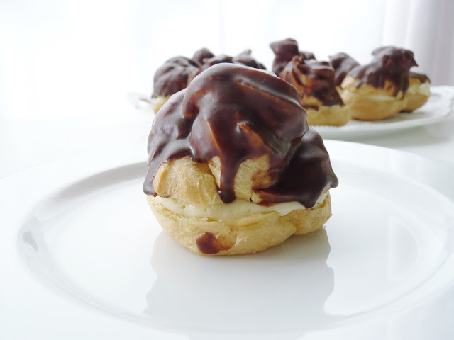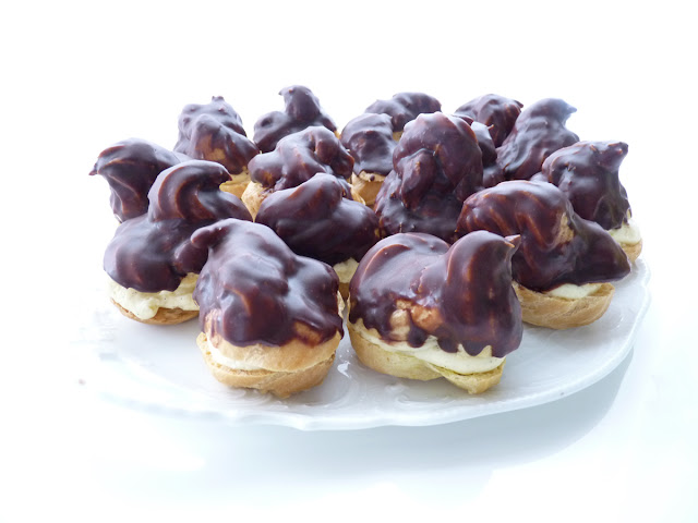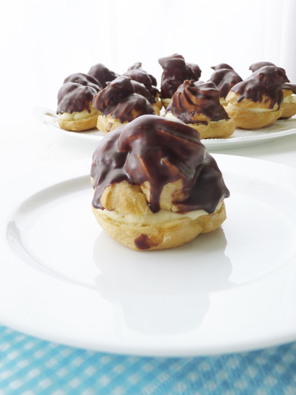 profiteroles filled with vanilla cream (dipped in chocolate)