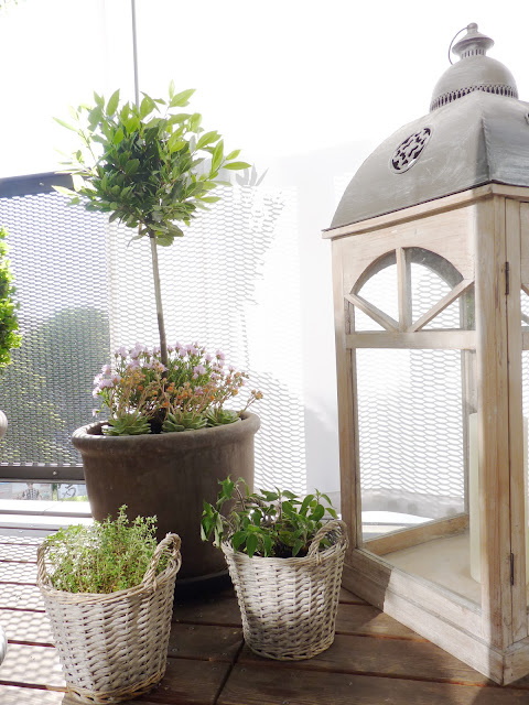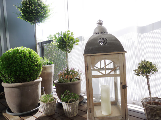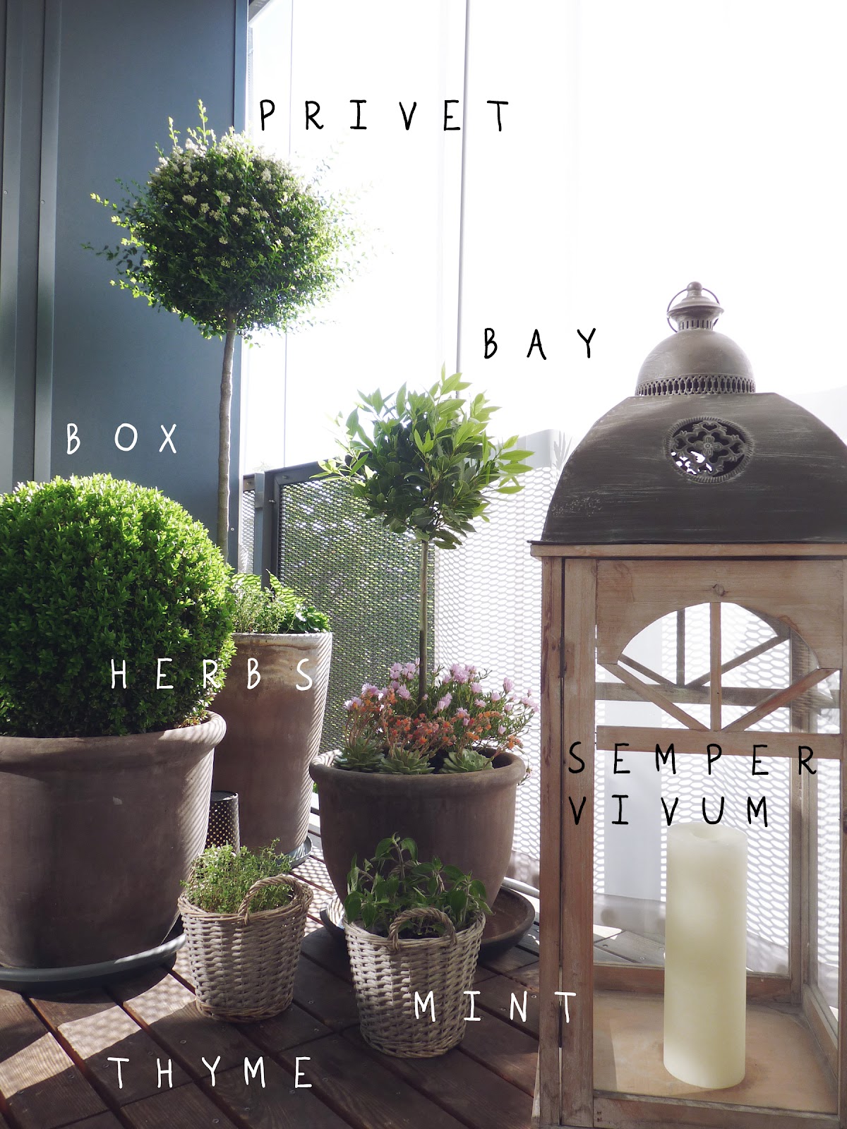 a few weeks back, i got new plants for my three pots. i know it's not really a garden, but it certainly still feels like it. i wanted to get the most out of the space i have - but still have something that's pretty all year round, without much to do. so i got a new box tree, a new privet tree, a bay leave (great for adding to home-made sugo al pomodoro), a mini olive tree and some sempervivum for color (in neon orange and a bright lilac). for a special seasonal kick, i added som herbs: rosemary, sage, oregano, lemon balm, thyme, lemon thyme, mint and a special pineapple mint (that one is so addictive). i love to tend my tiny garden. it keeps me sane despite living in the city, where green space is limited.