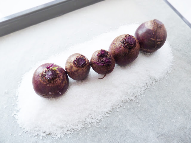 first prepare the maldon sea salt and thyme spice mix: combine the salt and the thyme in a mortar, and grind well. put aside.