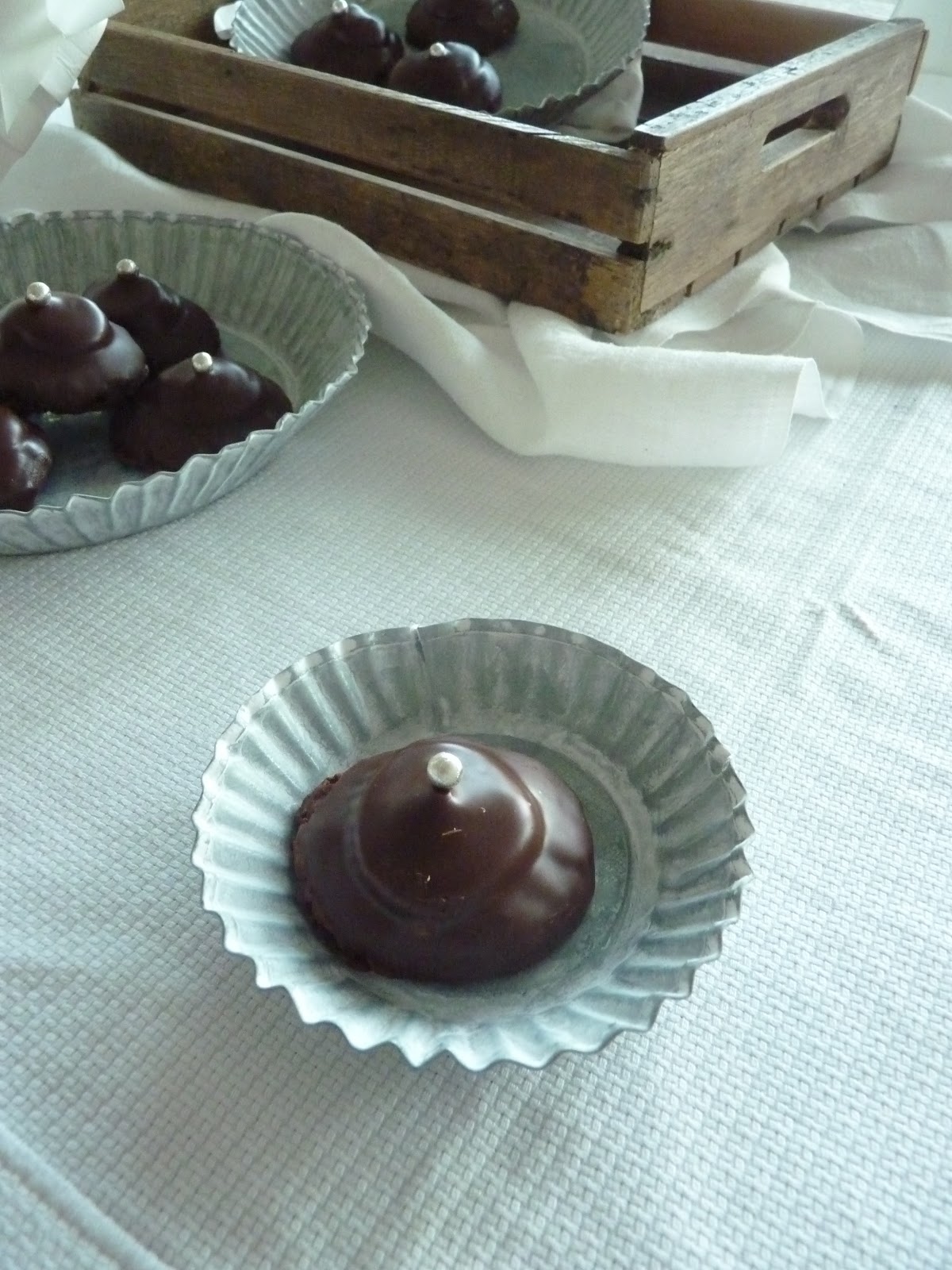 here's something i've been meaning to show in forever: chocolate hazelnut maccarons - with a chocolate ganache and chocolate cover. totally forgot about this post. but thank god for a few prepared posts; comes in handy in moments when you're not your usual energetic self... (and i'm missing the lumineers concert because of this stupid sickness... so i'm also not amused). whatevs. eat a little sugar, scarlett. that's what you need. or ice cream! nice and cold, good for the throat. and quick - if you can schlepp yourself over to the fridge, that is... aaah, the daily challenges we're rising to meet.