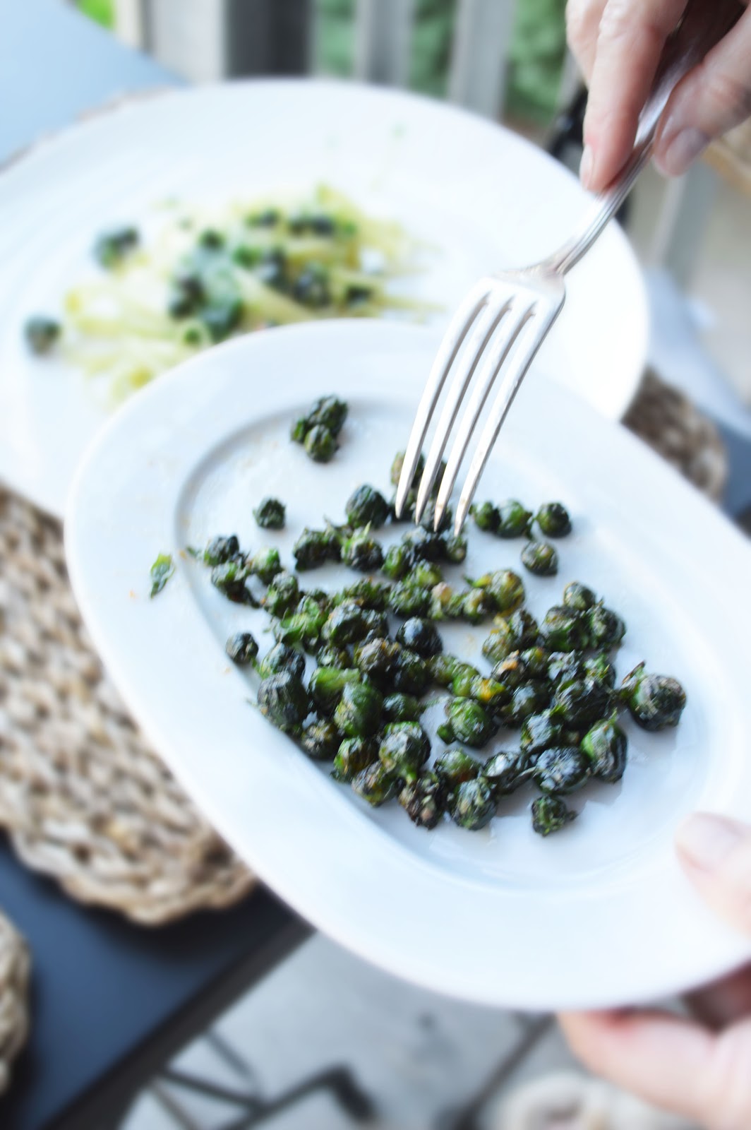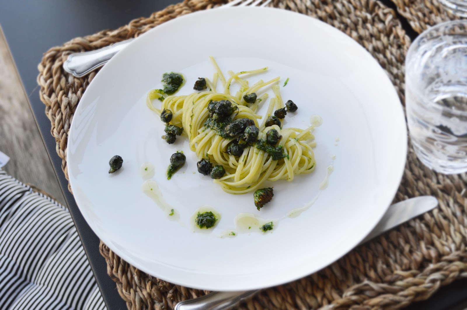linguini with baerlauch (wild garlic / ramps) paste & roasted dandelion buds
