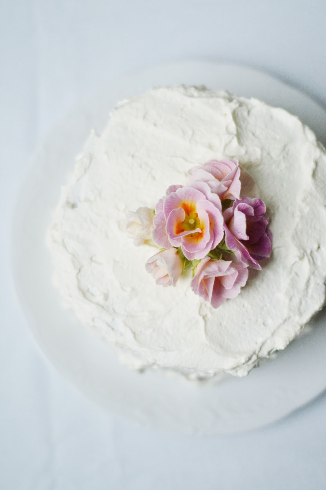 if need be, remove any uneven bumps or heaps in the middle of the cake to make them even and layerable. whip the cream, then add the sugar and vanilla and stir to combine. put the bottom layer of the cake on a plate or cake stand, distribute a layer of whipped cream, then place the second cake layer on top. frost with the whipped cream all around.