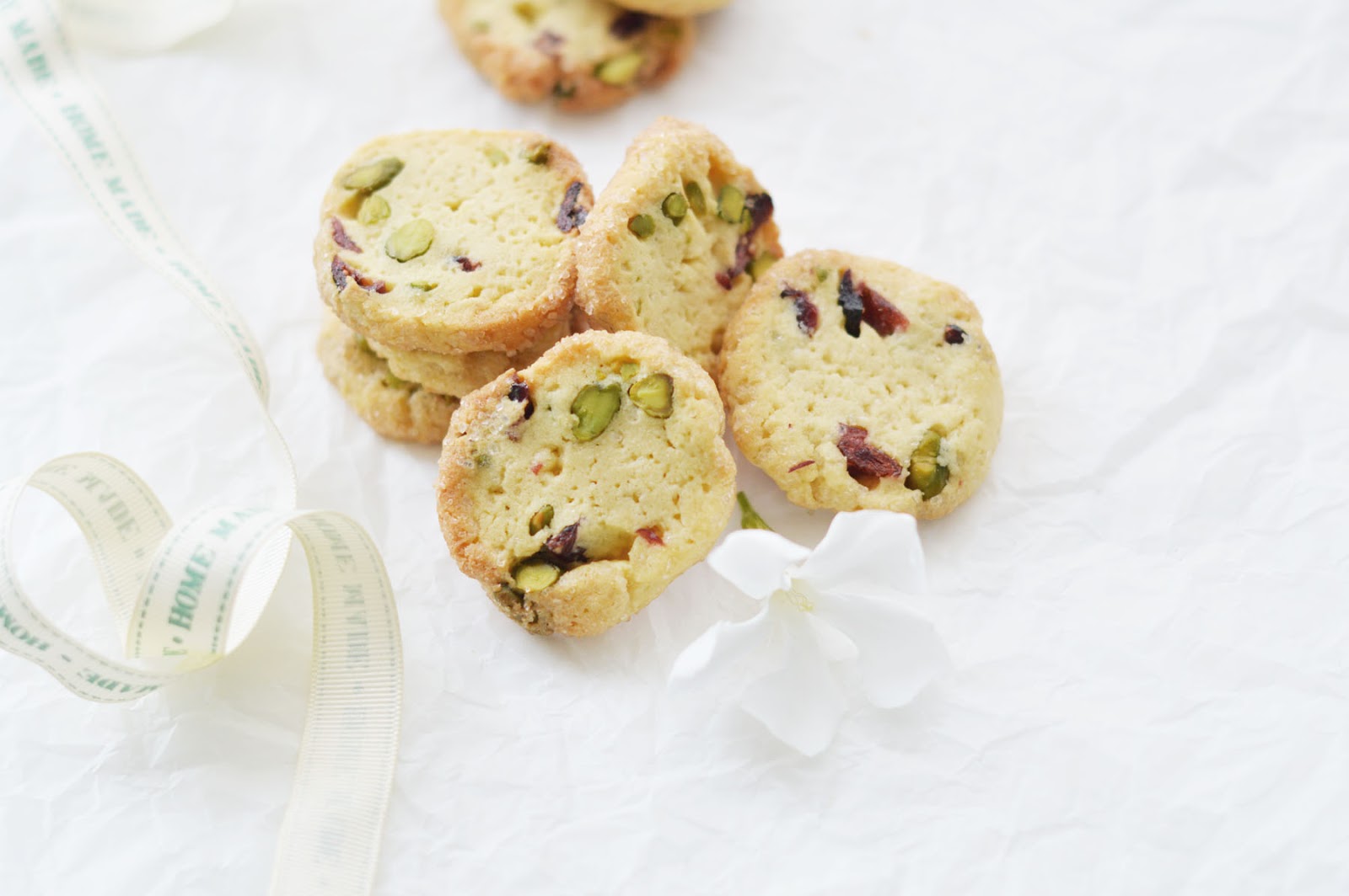 oh, and while we're talking about food, too: a while back, i got a pretty good looking, xl basket filled with sugar and spice and all things nice. all things that i really, really like. it was almost a bit creepy that someone should know me so well… there was my friend tonka bean, as well as some pistachios, cranberries and white chocolate. oh, and butter. hehe. the basket was sent to me by qimiq, complete with a recipe to bake these cookies. how cool it is to be spoilt, and on your doorstep, too!