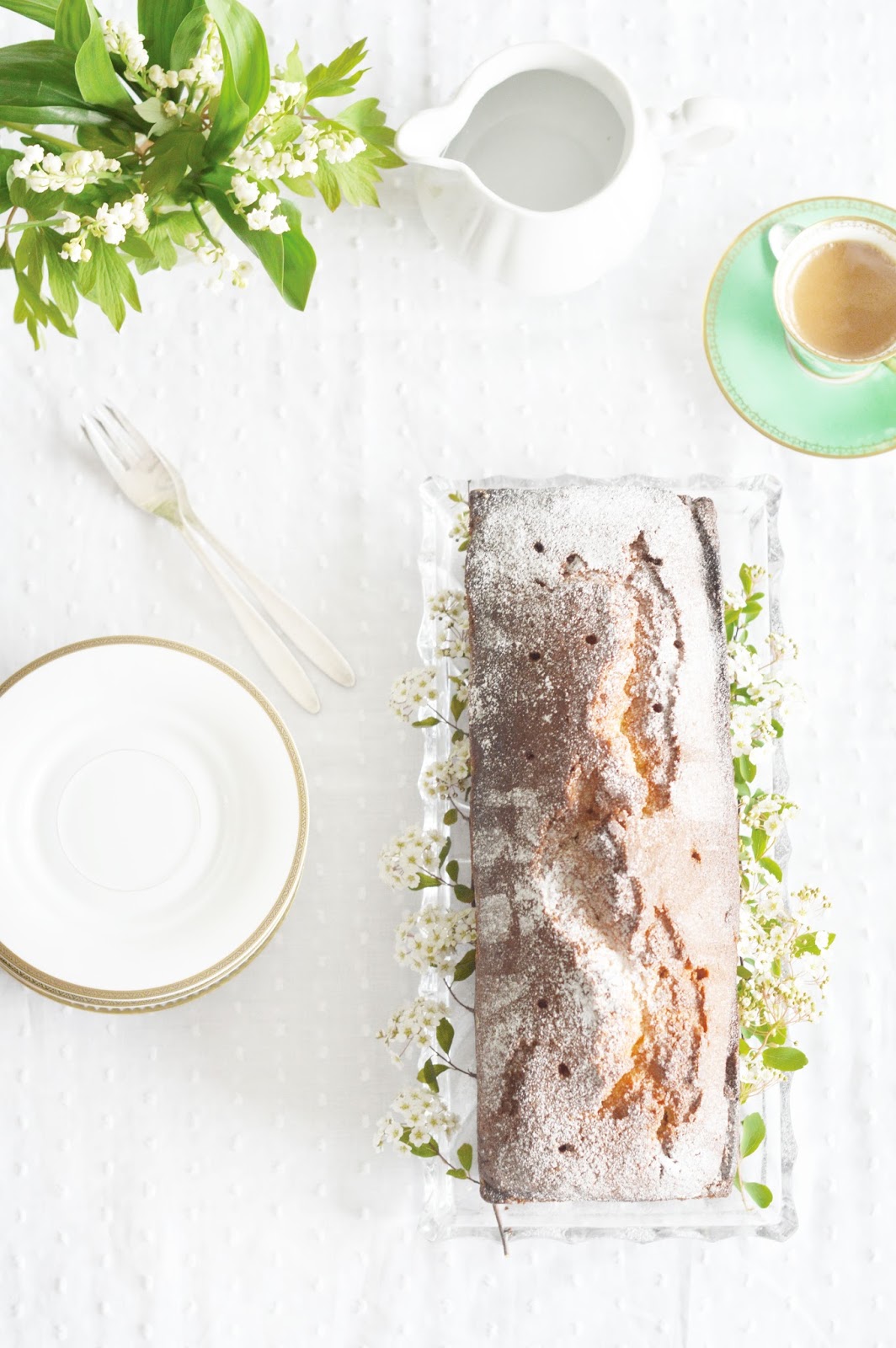 my grandma used to make this cake all the time, whenever we were (or weren't) visiting: the lemon loaf. well, i have to say it's never been my favorite. probably because it's tendency to be too dry, oftentimes. what i do like, however, is when a basic loaf is juicy and fragrant. this is where this recipe ads a spin to things. it means you don't soak the loaf with lemon juice like your granny does. it means you gently enhance it by adding elderflower syrup to the finished loaf.
