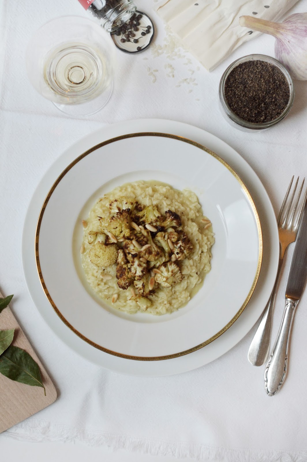 martini bianco risotto with baked cauliflower