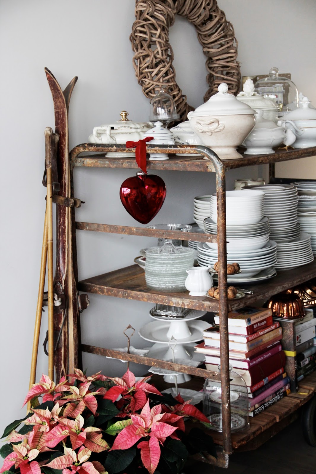 it's the season to be merry! and to begin with, there's always the same, much beloved tradition: decking the halls. in other years, the results looked like this and this and this. there are the traditional home made tree trimmings wreaths, the mistletoe (a must have for the fork and flower headquarters, as it's in the logo, too, and i am looking forward to it all year), poinsettia, ornaments, candles, scented candles and votives, twinkling fairy lights, pine cones, extra long matches and this year even a vintage pair of skis! enjoy the the holiday season! x