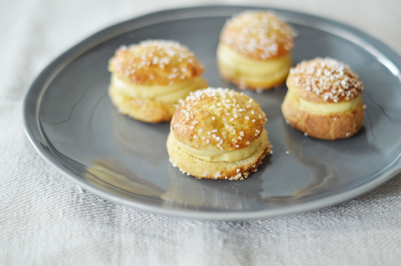 recipe adapted - as ever so often - from the bouchon bakery. i should make a category for 'bouchon bakery' recipes here on f&f. as always, it's a massive recipe. but i said it was a challenge, so… don't complain! because i surely didn't (not all the time, anyway). and another note: at bouchon, they make the tarte tropézienne with nutella plus pastry cream. i must say i was intrigued. yet, i thought my first real attempt at making a tropézienne had to be the classic version. you can flavor the crème patissière with some orange blossom water. we didn't though. we like ourselves some plain vanilla. pure, plain and simple, vanilly vanilly. btw: makes 1 large (about 25cm diameter) and 4 small tartes.