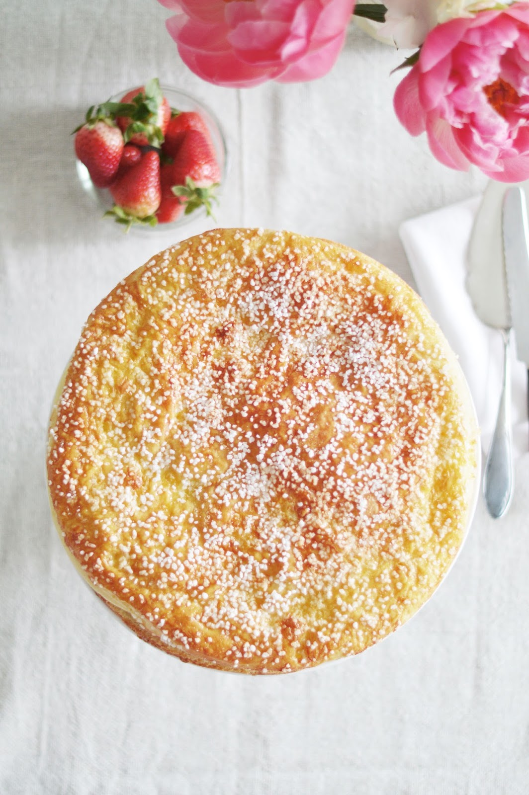 preheat the oven to 160 c / 325 f. brush the top of the dough with egg wash again and sprinkle with the pearl sugar. bake for 28 minutes in a standard oven, until the top is a golden brown and the center is baked through when tested with a toothpick. set the pan on a cooling rack and cool completely. the uncut, unfilled tropézienne can be stored wrapped lightly in a few layers of plastic wrap at room temperature for up to 3 days or frozen for up to 1 week.