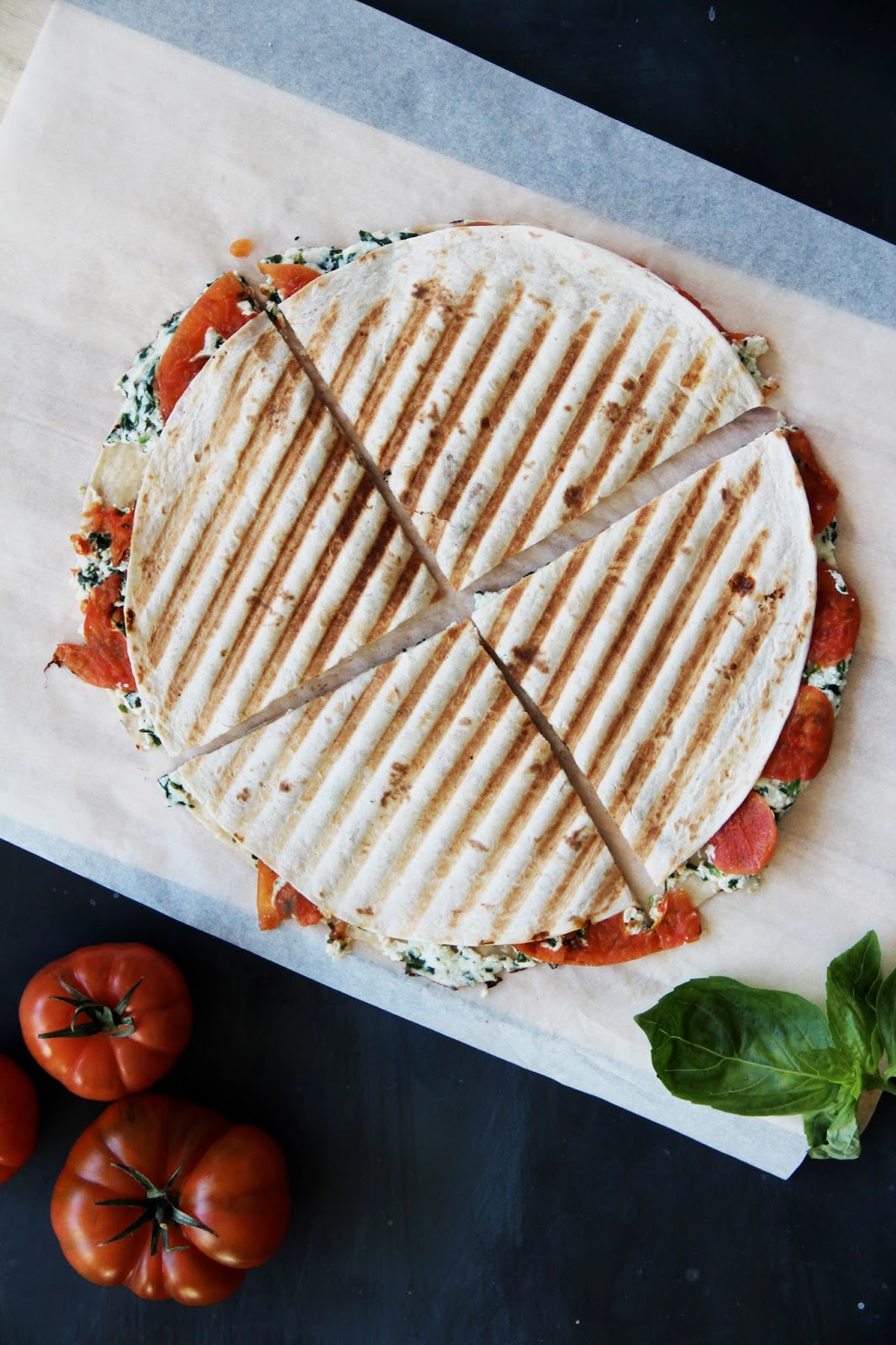 grilled ricotta tomato quesadillas