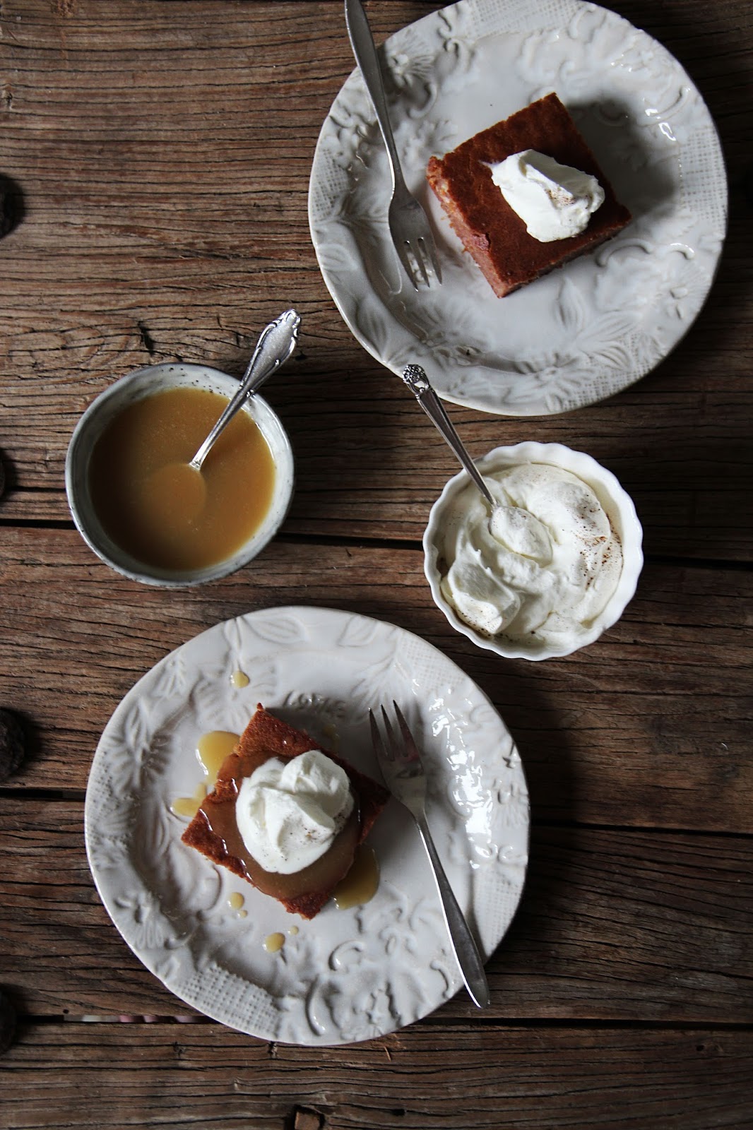 serve the cake warm, with a drizzle of the warm toffee sauce and some whipped cream with cinnamon, if you like.