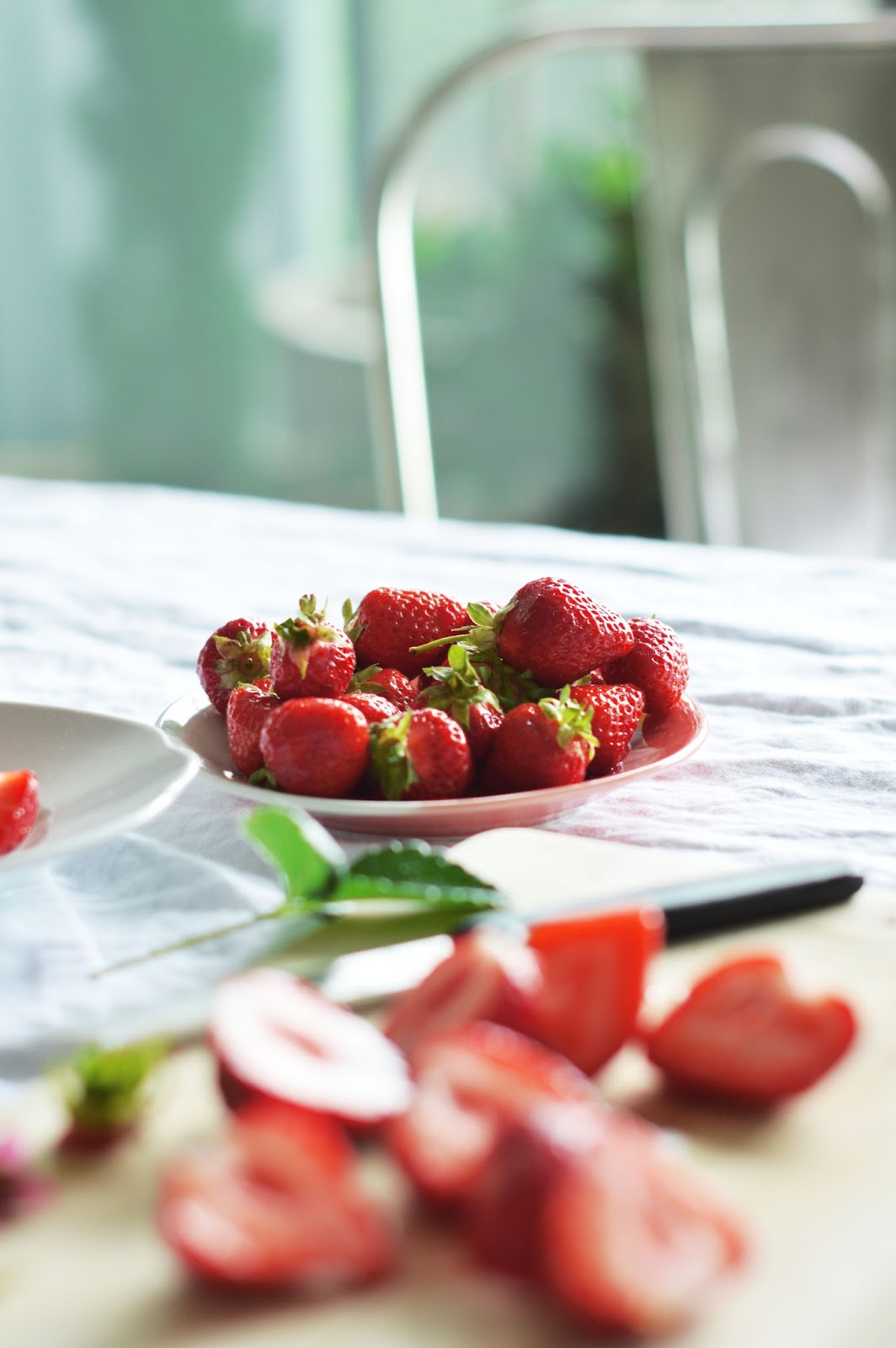 500 strawberries, hulled and halved