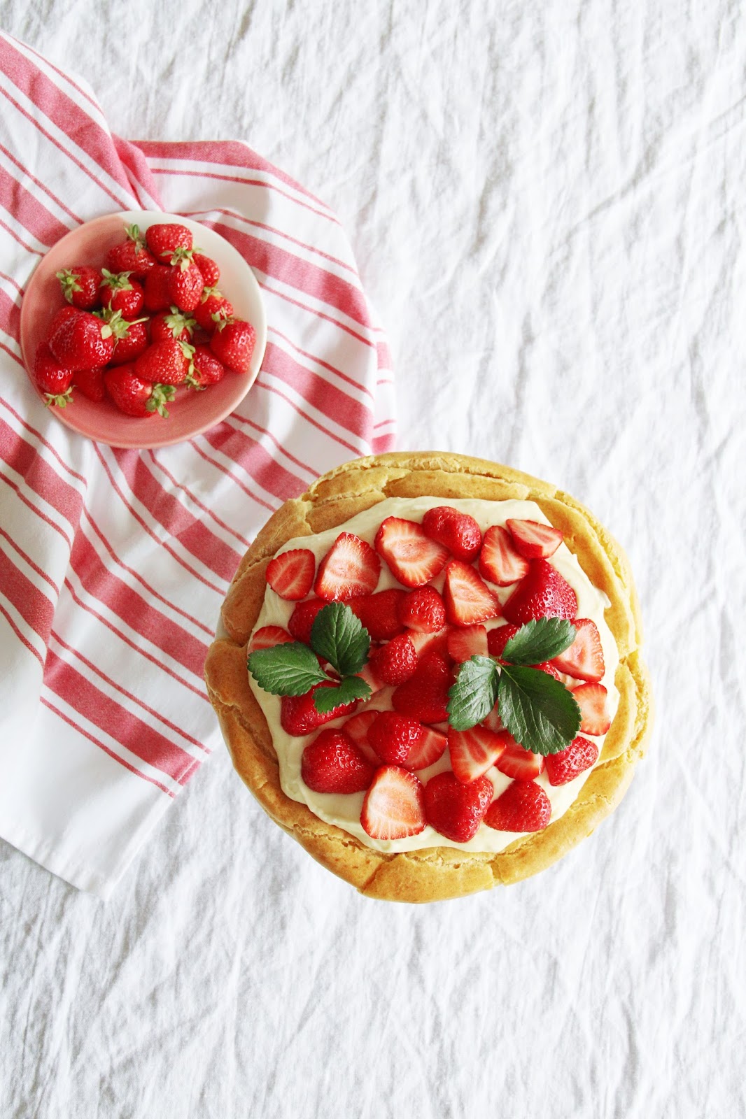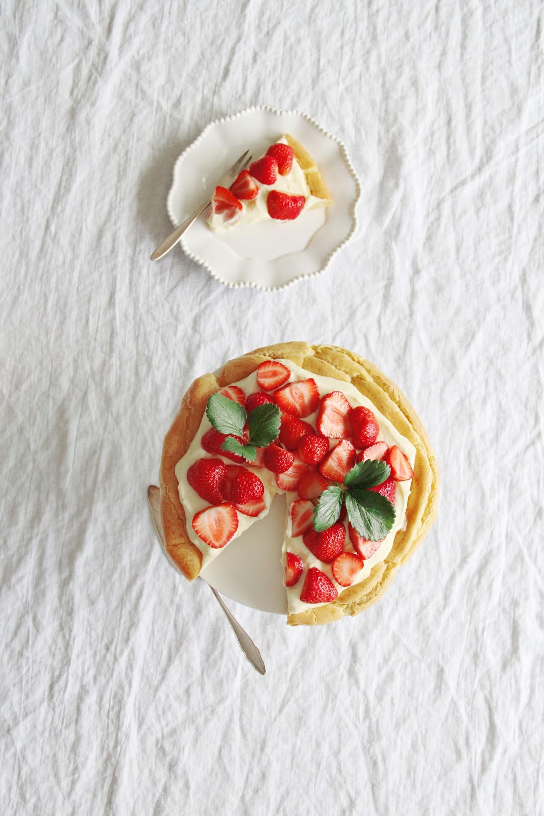 whenever there's a chance to "hack" something, in order to make my life easier as a result, i embrace it. making perfect patisserie, for instance, has never been my (secret) virtue. although i really like to eat perfect patisserie. for my domestic usage, albeit, i like taking the shortcut: this eclaire tarte fits the bill perfectly, and i'm so proud of my creation. it doesn't have to look perfect, rather, you can simply slather the choux pastry dough into a circle and be done with it. much like a pavlova, really. smear some good, ol' crème patissière on top, cover with hulled and halved strawberries and serve cold.