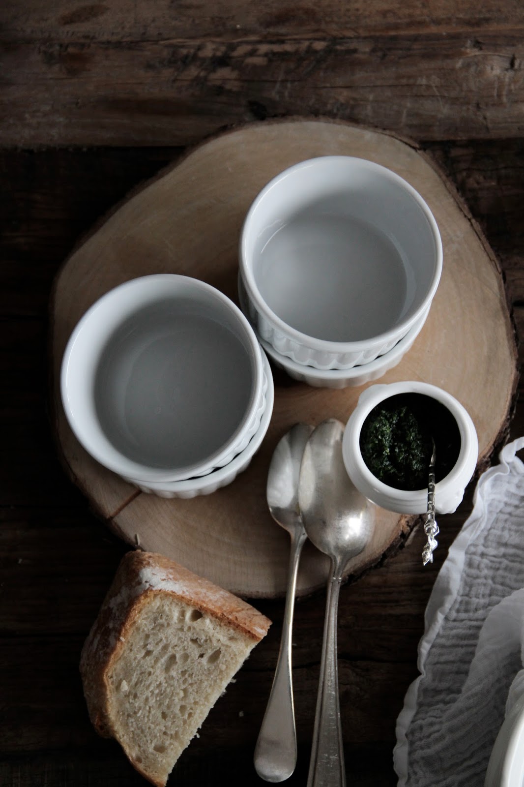for the parsley oil coarsely chop the parsley leaves, then blend together with the olive oil, garlic and est. season with salt, pepper and honey.